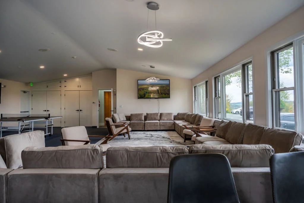 Summit Hall, named for its role as a gathering place and a source of inspiration, is a spacious 3,000 square-foot hub at Woodhaven. This welcoming space houses the Recovery Lounge, Woodhaven Academy, and our Indoor Recreation area, fostering an environment that promotes personal growth, education, and relaxation.